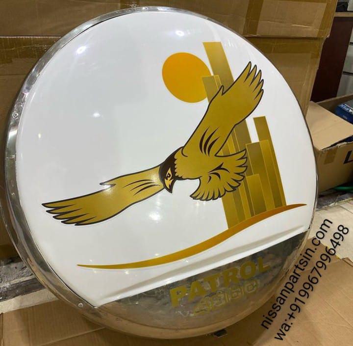 Product : Brand-new, unused, unopened, undamaged spare wheel cover in its original packing. Chrome Spare tire cover with 2 key locks Tire size : 205 x 70R15, Chrome ABS silver finish cover with gold PATROL sticker.